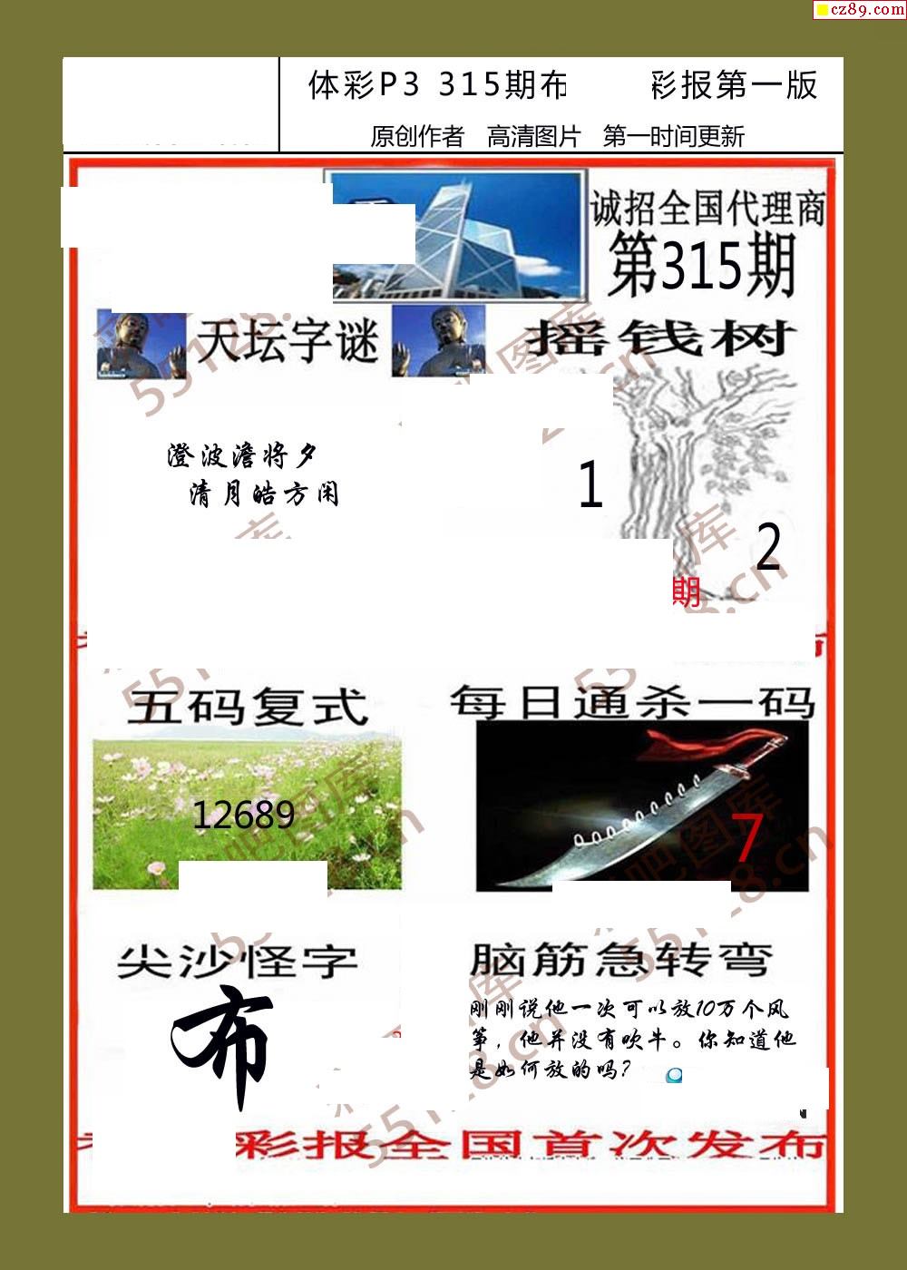 香岛彩报315期体彩p3图谜
